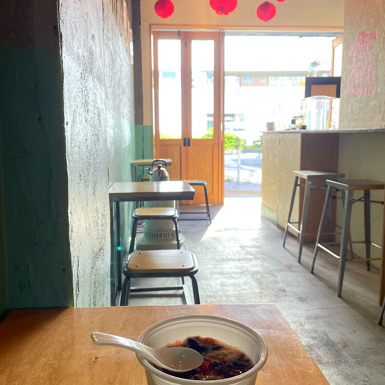 台湾のごはんやスイーツが楽しめる小さなお店。 壁の色や天井の飾りが本当に台湾に来たみたい。 一度で色々楽しみたくて、豆花と杏仁豆腐のハーフ&ハーフにトッピング全部載せという欲張りメニューにしました。 ベースの豆花と杏仁豆腐はもちろん、ピーナッツを柔らかく煮たものや仙草ゼリーなどトッピングも全て優しい甘さでとっても美味しかったです。