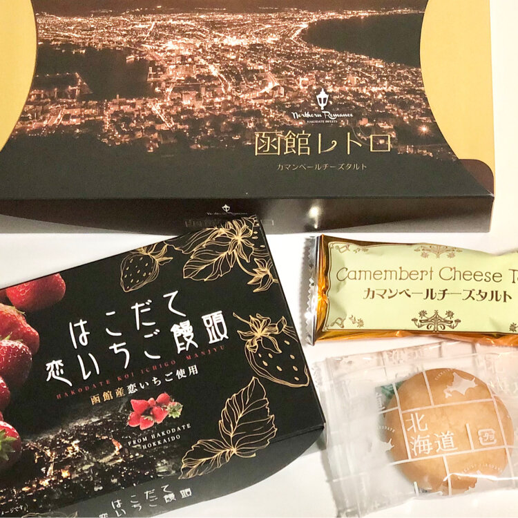 【函館のお土産】 函館のお土産をいただきました✨ パッケージが素敵な「函館レトロ」❣️チーズ感たっぷりのカマンベールチーズタルトは、濃厚なお味✨ 「はこだて恋いちご饅頭」は、いちごのつぶつぶが入っていて、美味🍓 ありがとうございました😊🌸