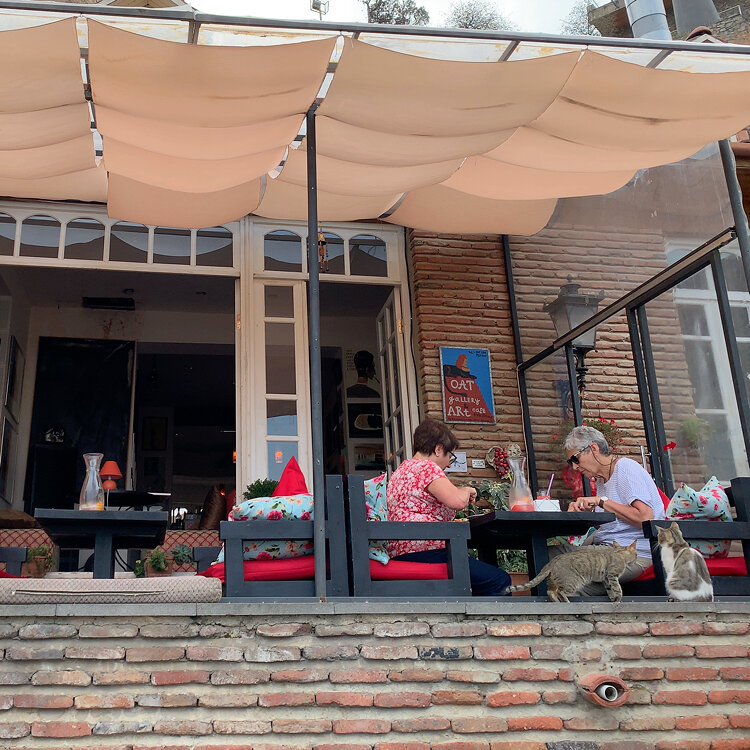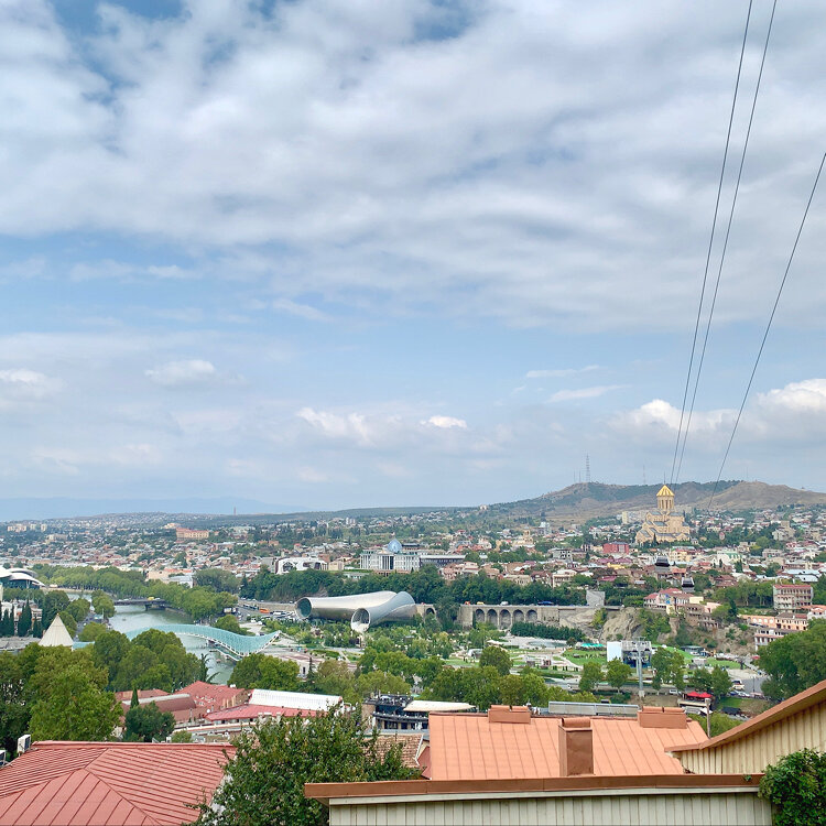 トビリシの街を見下ろし、目の前をケーブルカーが行き交うすばらしいロケーションのテラスでひと息ついた旅の思い出。