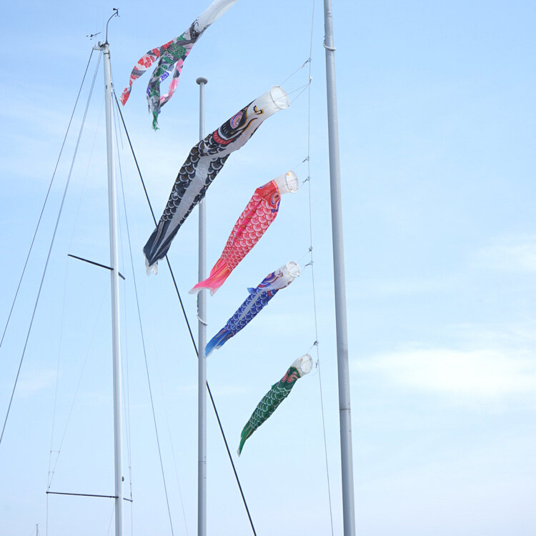 ヨットのマストの先に鯉のぼりを発見して近寄ってみました。親子の姿も微笑ましく、季節を感じる鯉のぼりの姿に心軽やかになりました。UWの旗も風にたなびいていて海風を感じます。