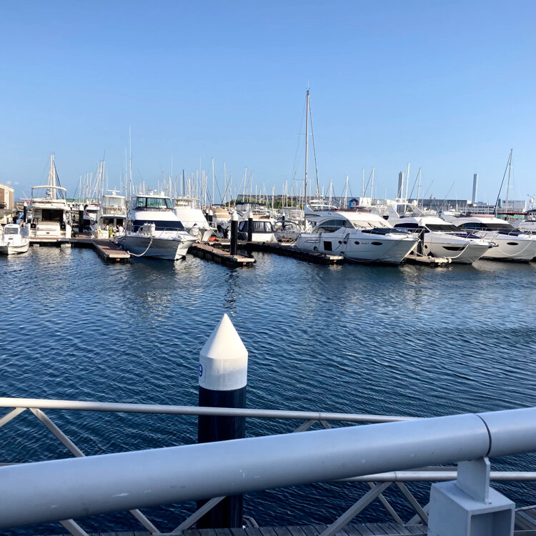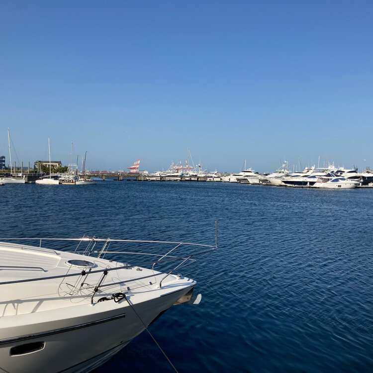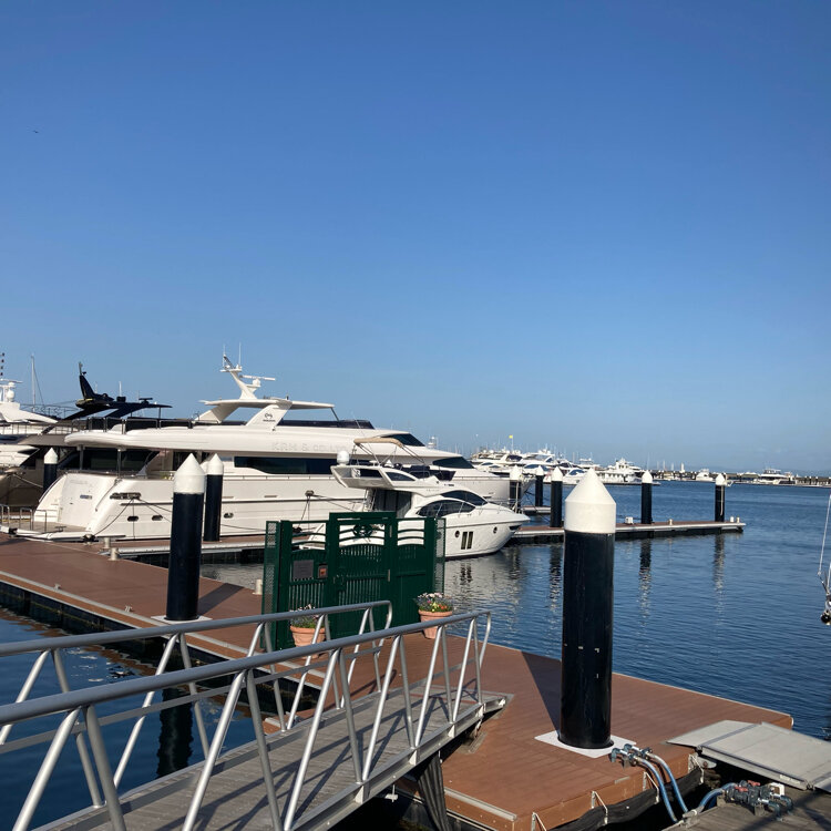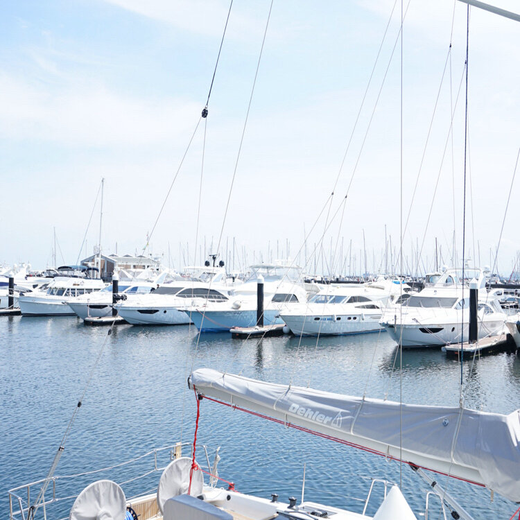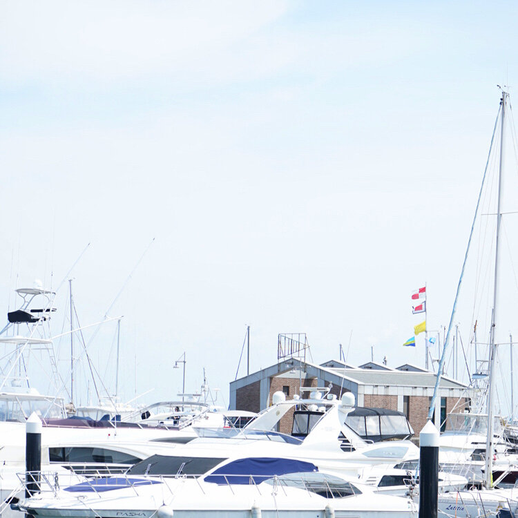 たくさんの立派なヨットや豪華なクルーザーが並び、さすが都会のマリーナだなぁと思う場所です。