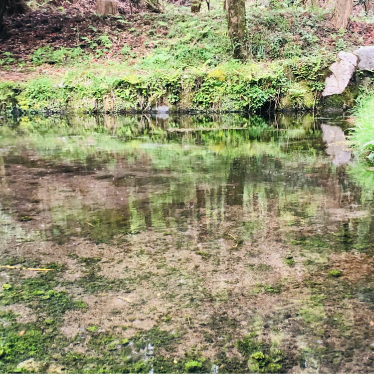 水源まで560mの遊歩道を自然を感じながら歩いていくと、池山水源とはまた違う景色が見えてきます。