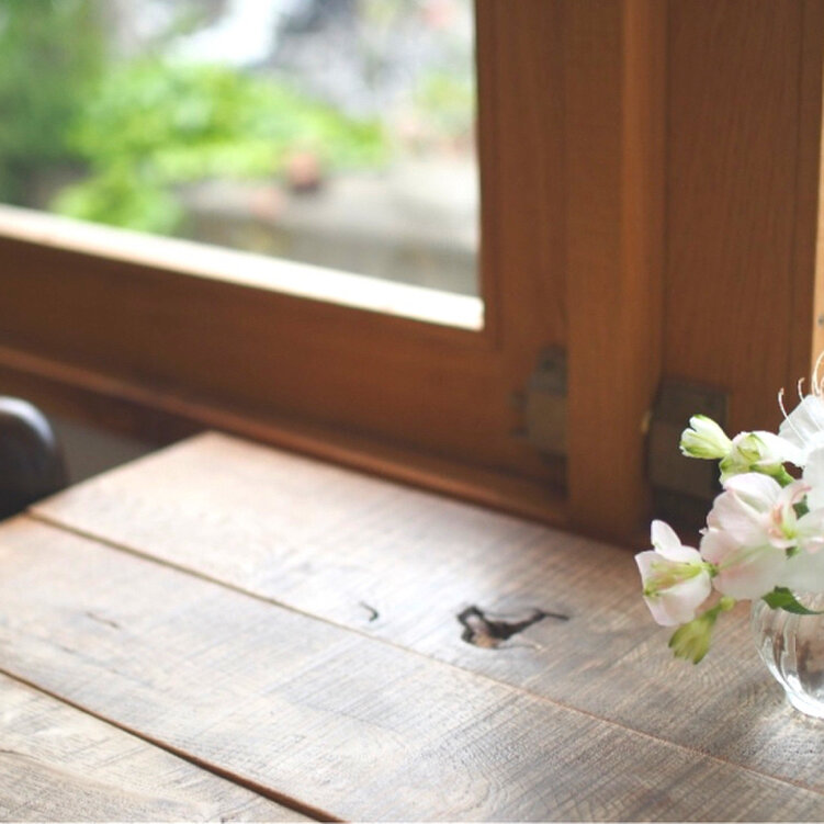 オープンと同時に入店、奥のテーブルではお花の準備中。