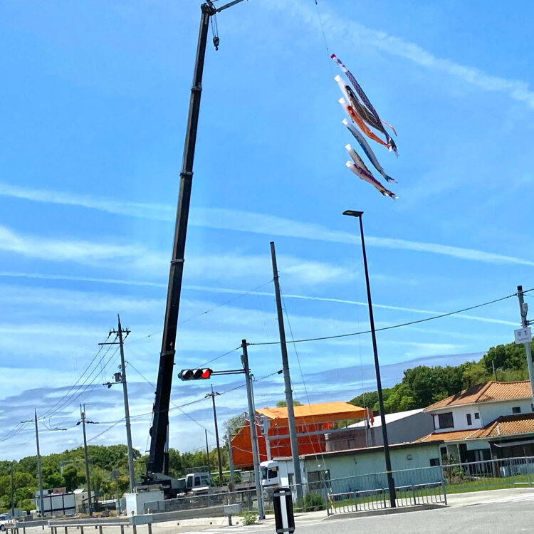偶然通りがかった神戸で見つけた豪快な鯉のぼり🎏 巨大なクレーン車、いい仕事していますね〜😸