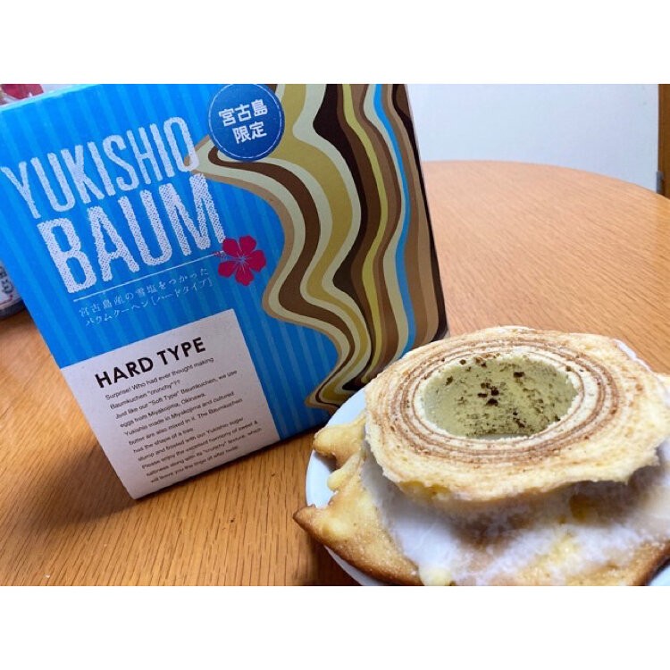 宮古島お土産 宮古の雪塩をつかったお菓子 バウムクーヘンと、ラングドシャ 甘味にチョッピリ塩味がきいて美味しい😋 特に、バウムクーヘン!ほとんど一人で食べてしまいました💦