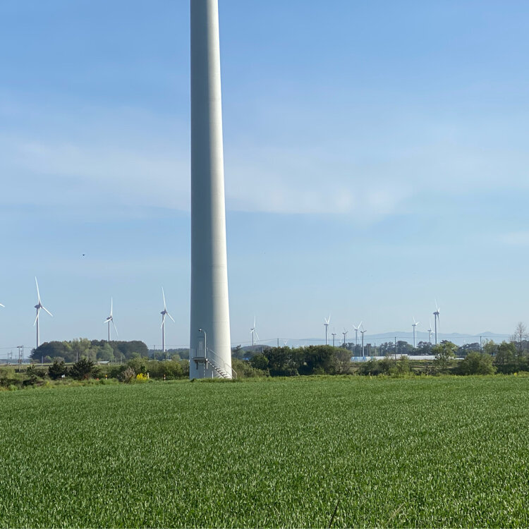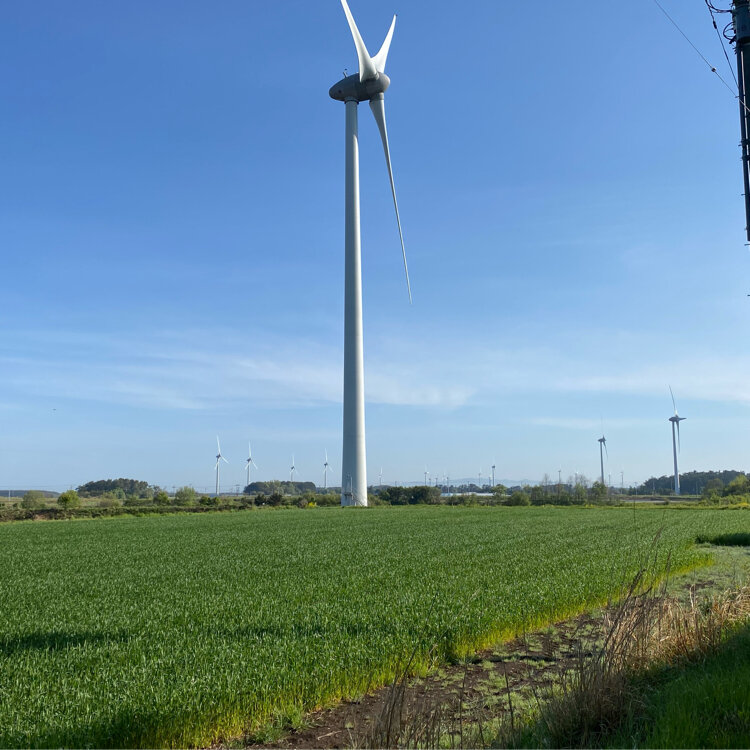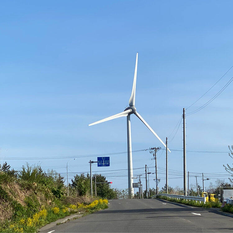 竜飛崎に行く途中、つがる市のメロンロード沿いに風力発電の設備をたくさん見ました😊