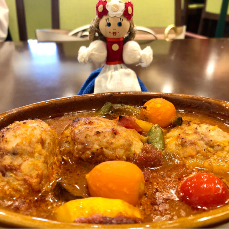 今日のスペシャルランチから選びましたが、定番ランチセットは、ロールキャベツorジャルコーエ(豚肉とパプリカのトマト煮みたいなの)