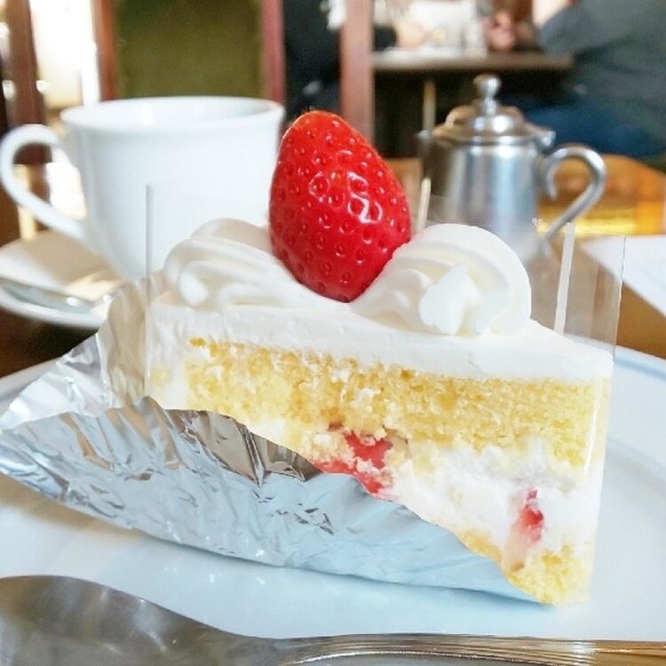 いちごのショートケーキは生地がほわほわふわふわで生クリームが軽くなめらか🍰✨真っ赤ないちごがのったこれぞシンプルで王道なショートケーキ!!🍰✨