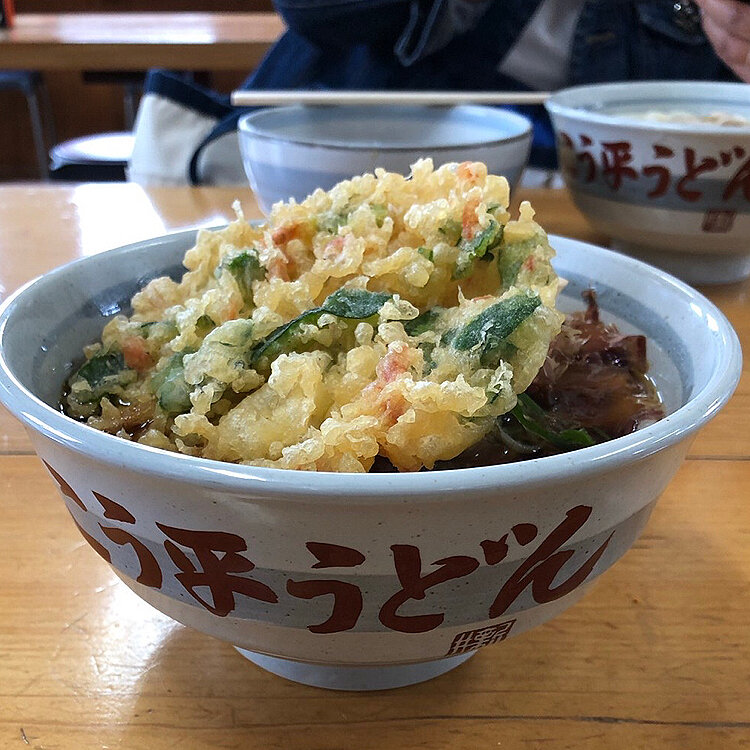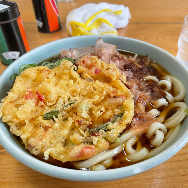 相方①は、うどん1玉に天ぷらをプラスした「かけ」