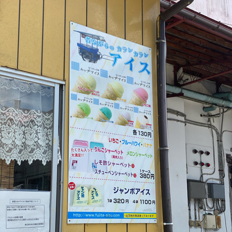 今日は気温が上がってきたので、以前から気になっていた「昔ながらのカランカランアイス」、藤田アイス店に行ってきました🚗