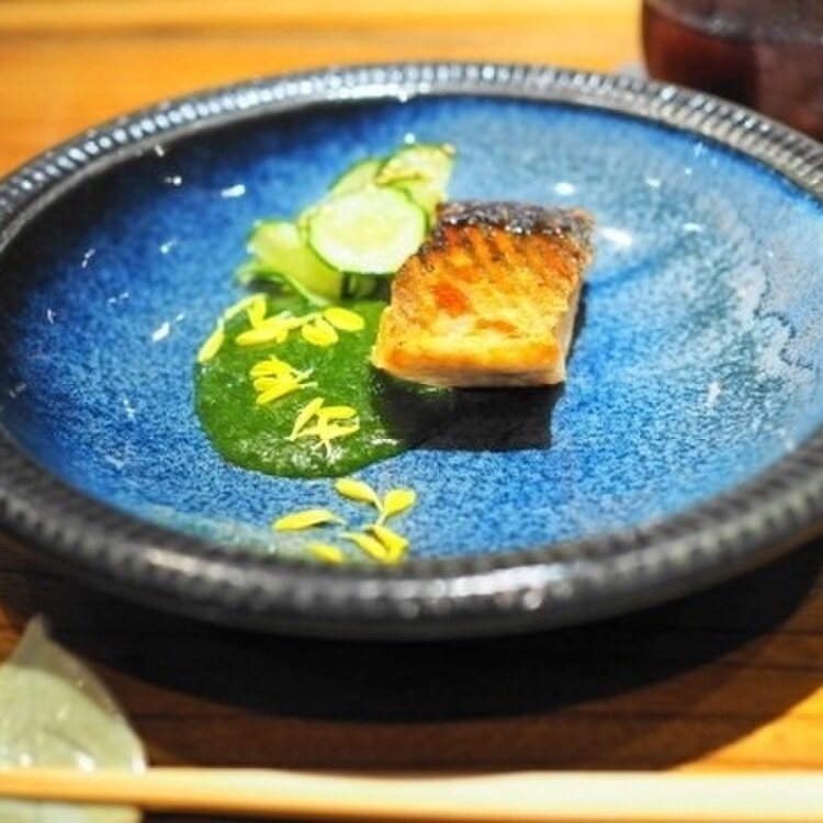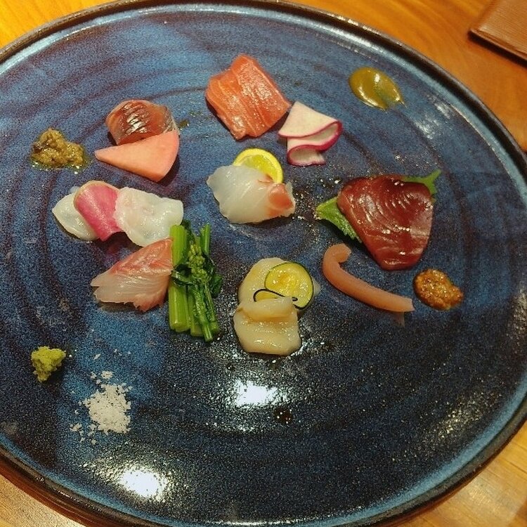 【四季彩食 いまむら】 港町石巻市にある「いまむら」さん。 地の食材を使って作るお料理は逸品揃い。 器も石巻市にある窯元「三輪田窯(みのわだがま)」もの。 印象的な蒼色の陶器、私もファンです。