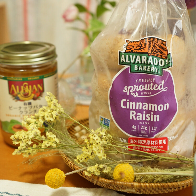 スポットは1枚目のベーグルとピーナッツバターを購入したオーガニックスーパーのビオセボン。このシナモンレーズンベーグルはオーガニック発芽全粒粉にこだわってパンを作っているカリフォルニアのお店のもので、以前も買っておいしかったのでリピートしました。