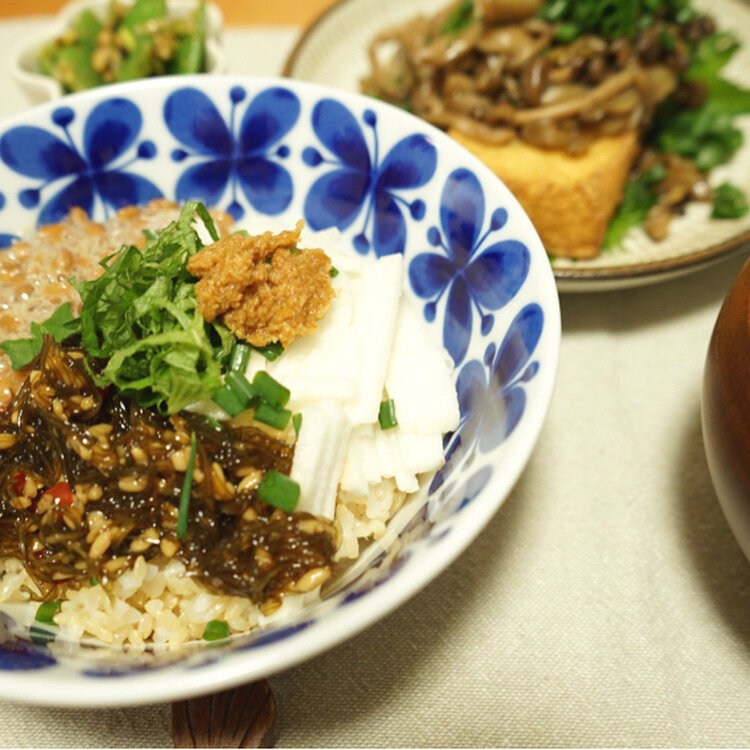 一目でそれとわかる伝統柄も好きですが、今回はちょっと変わったこの柄にしてみました。どんなお料理にもしっくり馴染みます。このお皿を購入した日は厚揚げと野菜のグリーンカレーを作ったのですが、やっぱりアジアンテイストにもぴったりでした(4枚目)。