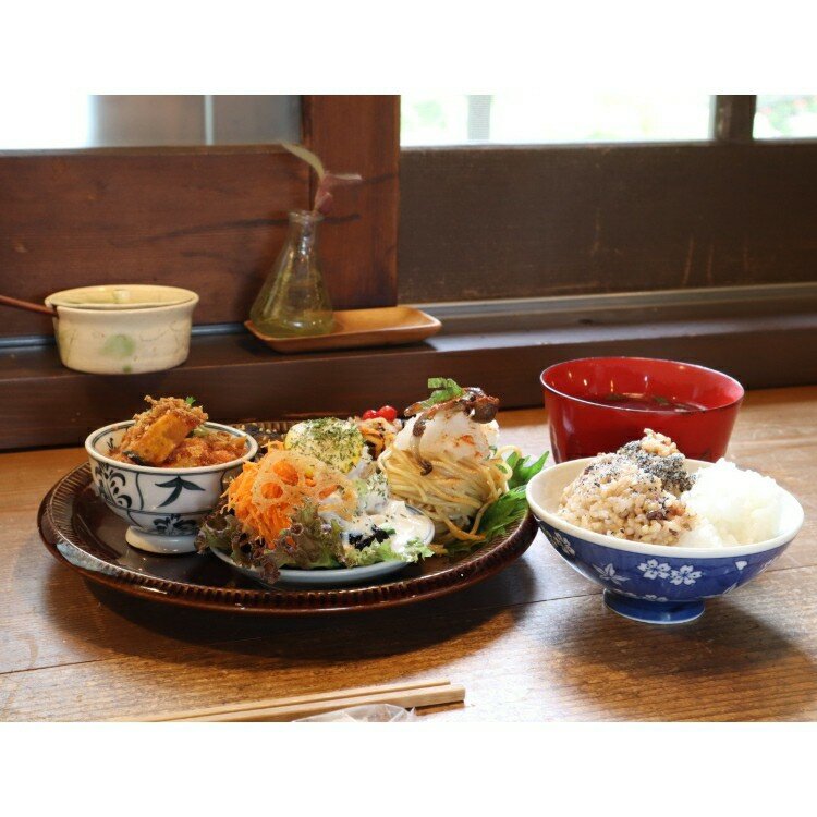 ご近所カフェ ハレノヒさんでランチ メイン2種から選べるハレノヒ定食 今週は茄子と車麩の南蛮酢あえ豆乳タルタルと お肉のハンバーグ 副菜はお野菜たっぷりの4種 ごはんは酵素玄米と分付き米の半々で ヘルシーでボリュームたっぷりのランチは 体の中からキレイになる感じで おなかいっぱい大満足でした😋 #三重カフェ#ランチ#ヘルシー