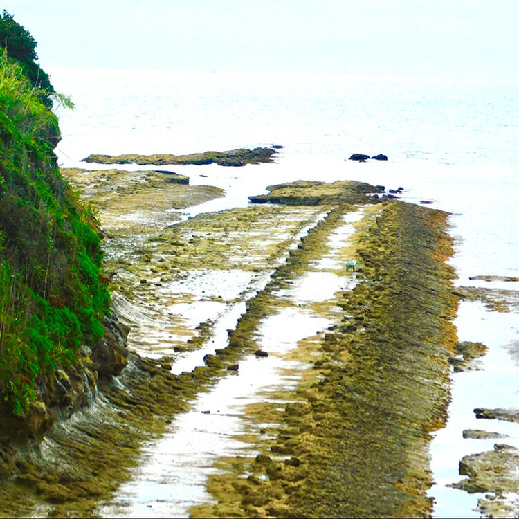 昔浅い海の底だったようで地層には、海の生物の化石が
