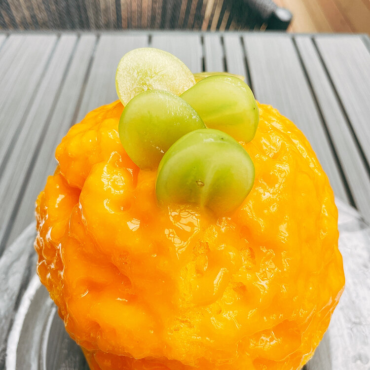シャインマスカットとトロピカルマンゴーのかき氷🧡