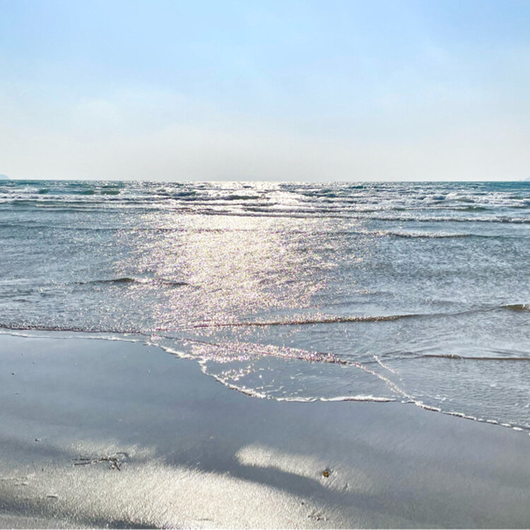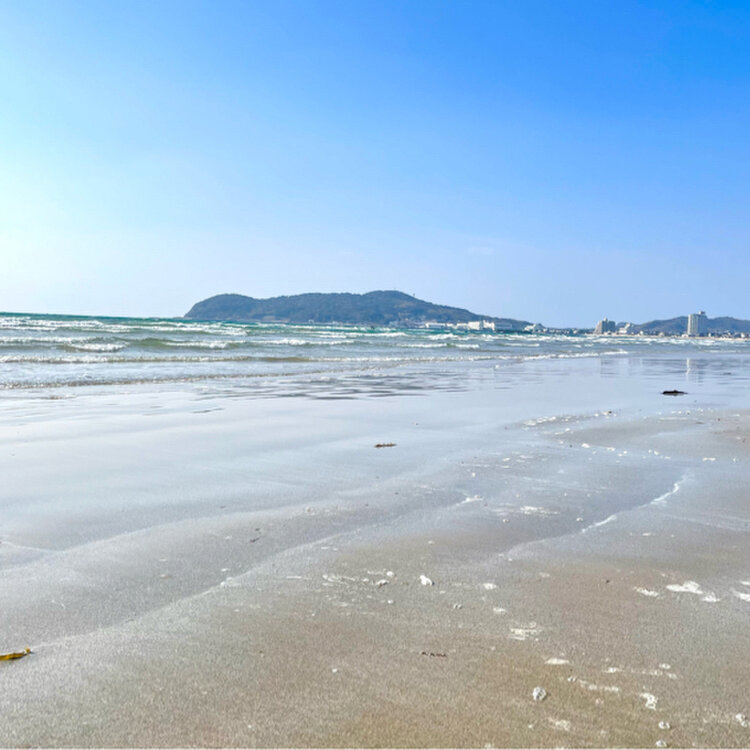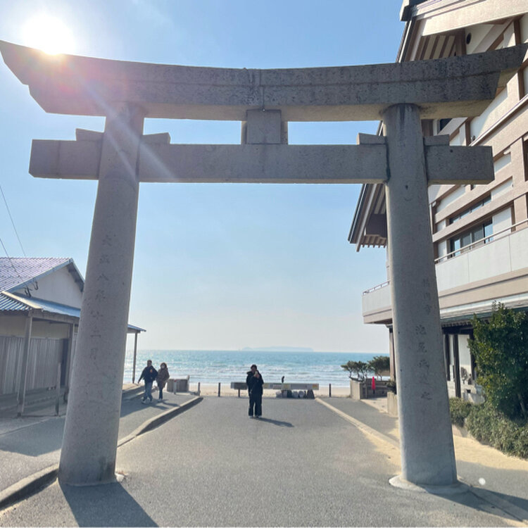 宮地嶽神社の光の道の先にある宮地浜海水浴場にて