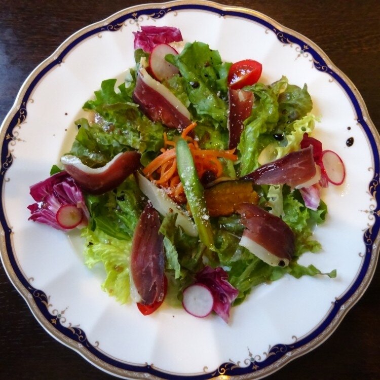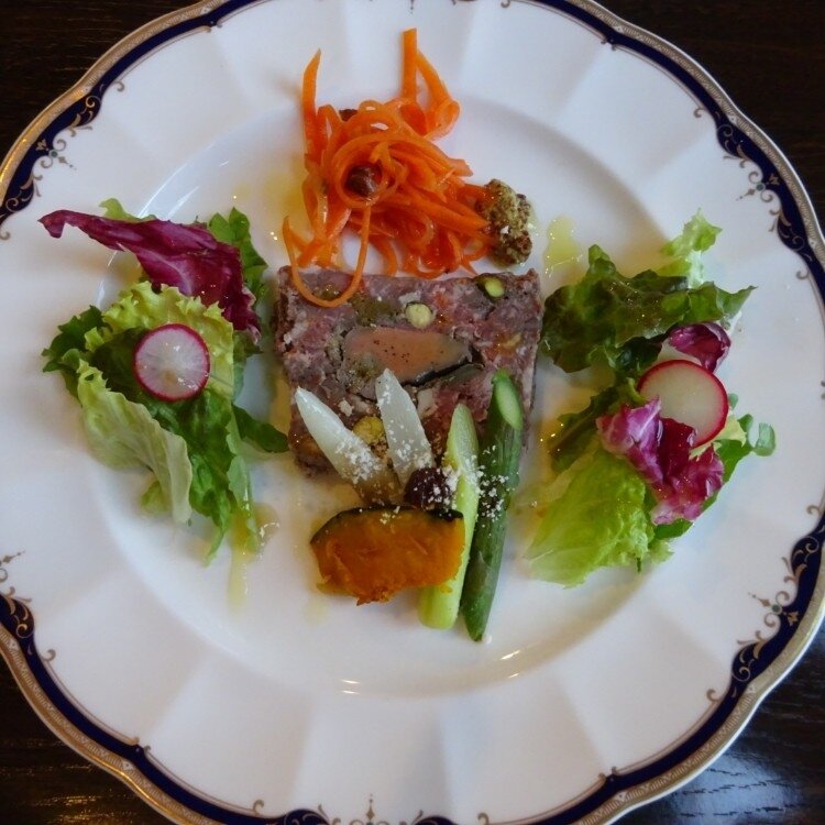 オードブルに娘は鴨肉の生ハムサラダ、私はお肉のテリーヌをチョイス🦆🐂