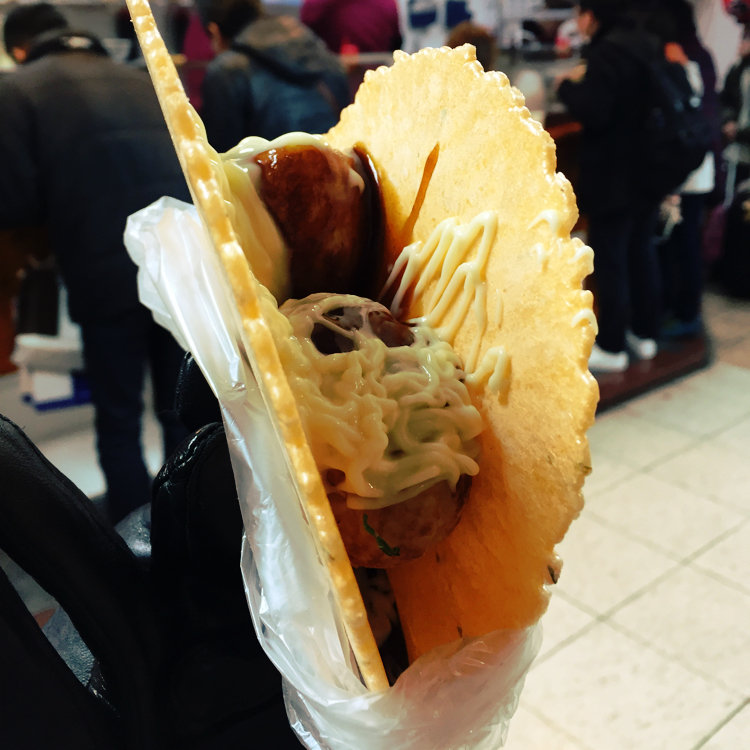 梅田食道通りのたこ焼き屋さんのたこせん。マヨネーズ多めが嬉しい。外カリ中トロで食べ歩き。袋のビニールの穴に注意。☆☆☆.5/5 #大阪#絶品