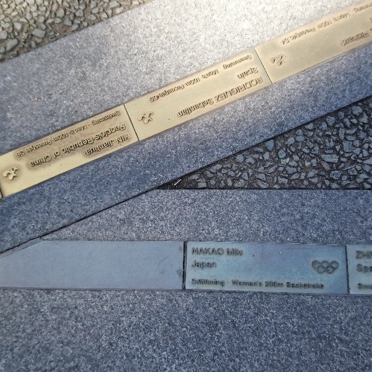 聖火台の下にはメダル獲得者の名前が刻まれています🥇🥈🥉