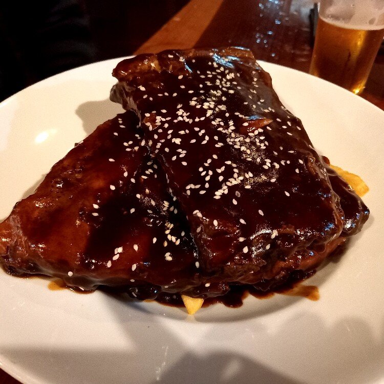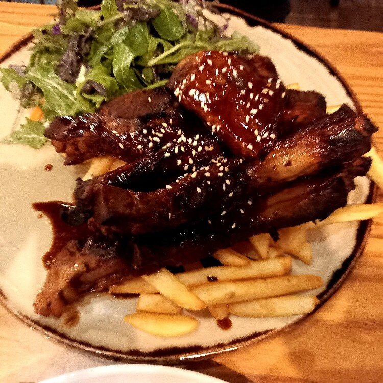 皿からはみ出るくらい大きくて、骨には柔らかいお肉がたっぷりついていて、BBQソースで手を汚しながら食べるの最高でした❣