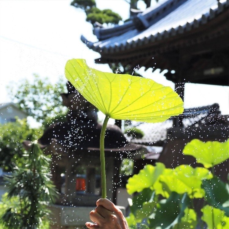 奈良県五條市の正蓮寺。境内はいろいろな蓮。ご住職が蓮のシャワーを教えてくださいました。日本の蓮とアメリカの蓮の香りの違いにもびっくり。#夏色さがし#自然にふれる#蓮#奈良#うまし夏めぐり