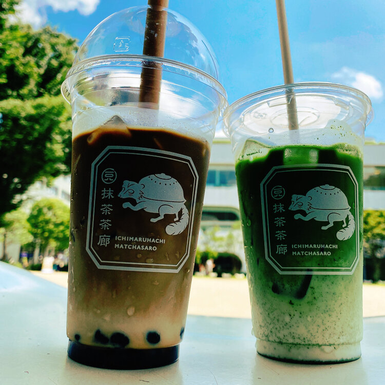 抹茶茶廊さんの抹茶ラテとタピオカ玉露ほうじ茶ラテ お茶がとっても濃くて美味しいです! このお店の今川焼きも美味しいので、機会があれば是非召し上がっていただきたい😊✨