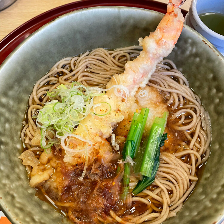 私が頼んだおそばの海老の天ぷらも海老がぷりぷりで美味しかったです。