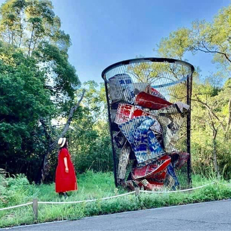 みぃ 巨大ゴミ箱を見上げる!   2020.9月 直島 香川県   直島には アートが点在している 巨大なゴミ箱オブジェ! 隠れ穴場写真スポット 地中美術館のチケットセンターから 徒歩7分 #直島 #直島アート #直島オブジェ #オブジェ #巨大ゴミ箱 #小人に見える