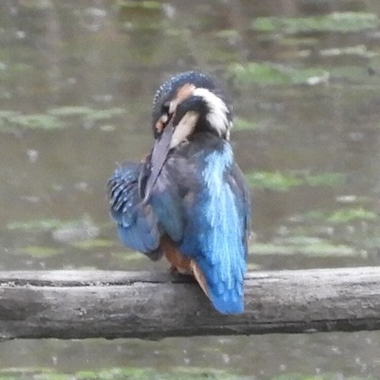 3枚目 カワセミくん「ぼくは羽のお手入れに忙しいんだ😊」