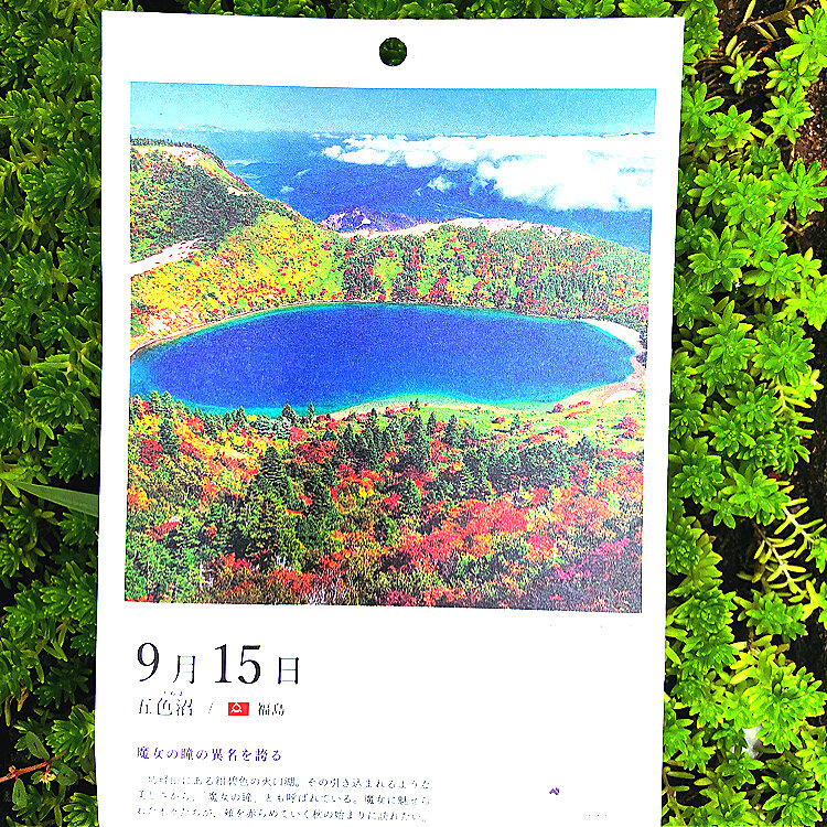 ☆*:.。. 日本一周365日カレンダー🗓.。.:*☆ 9月15日 五色沼 福島 ˚✧₊⁎魔女のひとみの異名を誇る⁺˳✧༚   一切経山にある紺碧色の火口湖。その引き込まれるよ   うな美しさから、『魔女の瞳』とも呼ばれている。   魔女に魅せられた木々たちが、頬を赤らめていく秋の   始まりに訪れたい。 いよいよ秋の到来、赤、オレンジ、黄色、さまざまな紅葉の色が見頃の季節ですね。魔女の瞳の異名を持つくらい、綺麗で澄んだ湖なんでしょうね。 #秋日和#福島#五色沼#魔女の瞳#紅葉