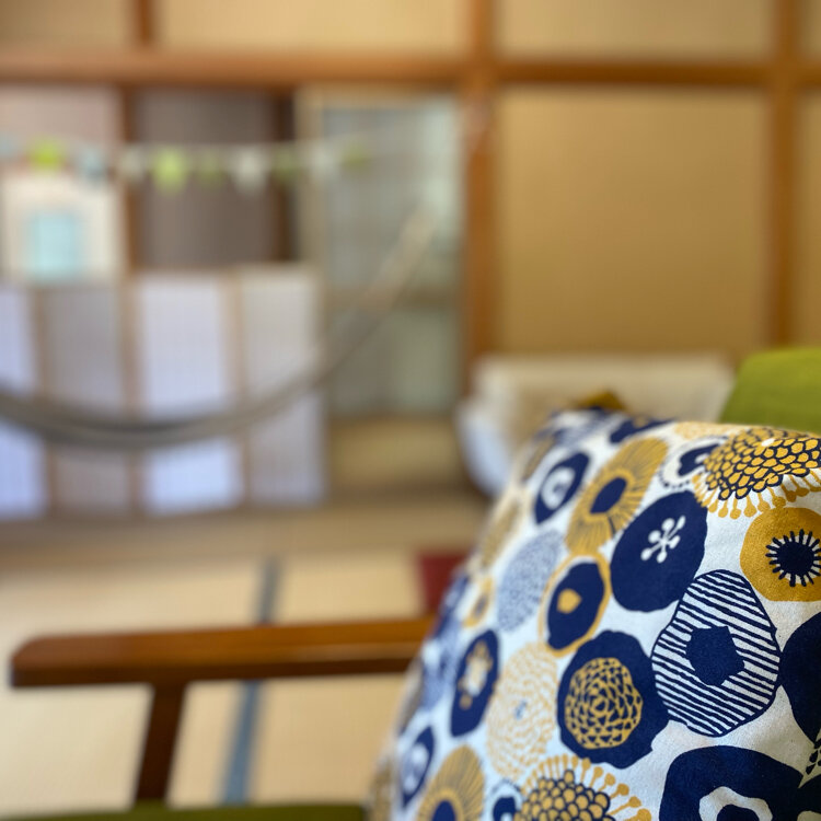 大きな窓からは秋の柔らかい光が差し込み、畳の部屋にはカラフルなソファやハンモックが‥