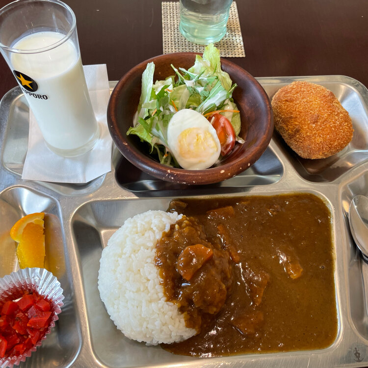 こちらの館内にあるカフェ憩さん(2021.10.17閉店)で、大湊海自カレーをいただきました。むつ市内の海自カレー提供店では、各部隊ごとの個性あるカレーを食べられるようです。今回食べた護衛艦はまぎりカレーには、またまた、ご当地グルメの大湊海軍コロッケ(めっちゃ揚げたて)もついてました。館内ではちょっとしたお土産コーナーもあり、むつ市のゆるキャラ"ムチュラン"グッズなどありました。