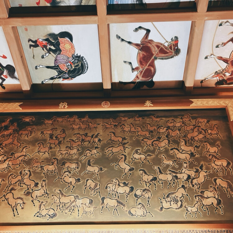 東京浅草観光。矢先稲荷神社 午年の今年に絶対行きたかった矢先稲荷神社⛩️ 天井の馬の絵が素晴らしかった✨ 陶器の茶色の馬のお守り目当てで行ったけど、残念ながら品切れでした。入ってくる数が少ないらしく、3月末にまた入荷するそうです🐎 絵馬の形の根付けは買えました♡かわいい♡ #東京観光 #浅草観光 #開運旅 #矢先稲荷神社 #馬