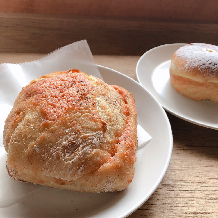 【KISO】 ・めんたいバターのフォカッチャ ・クリームパン しあわせ〜 めんたいバターたっぷり、 クリームはとろ〜り。 テイクアウトで ・無花果マスカットのルヴァン ジューシーでしっとり。 また、行こう!