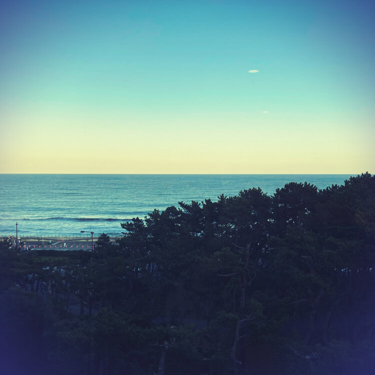 松林越しに見える太平洋 水平線。