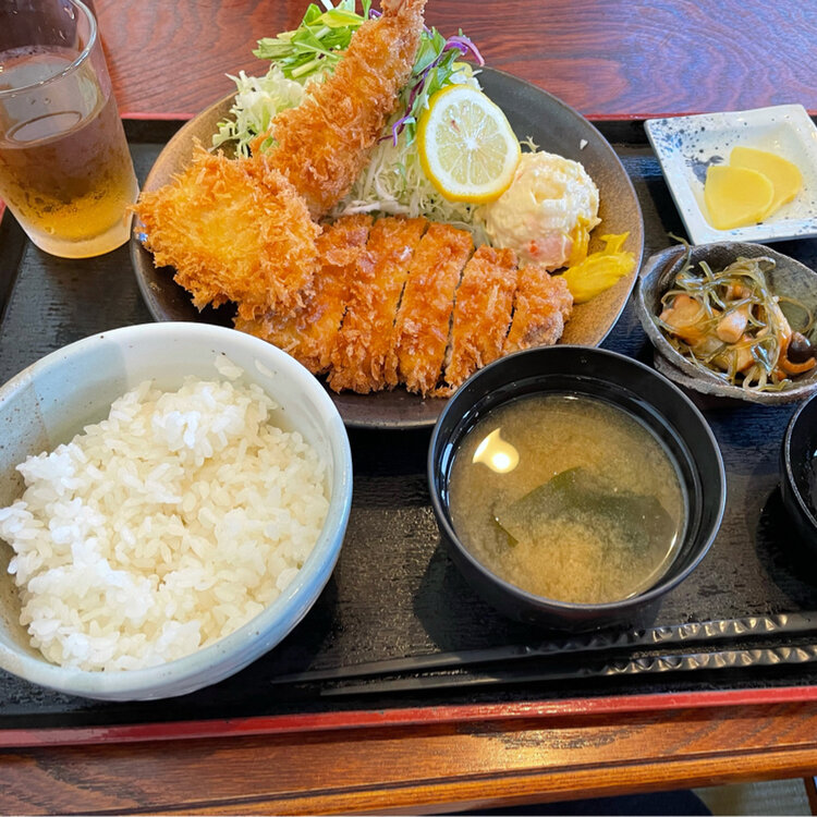 福島県いわき市 『波立食堂』さん。 今年の夏、お盆の移動は控えたくて時期をずらして、秋に遅めのお墓参りへ。 帰りの時間がお昼頃だった為、海に近い人気の食堂に。 ランチのミックスフライはエビフライ(しかも大きめ!)イカフライにヒレカツ。 揚げたてサクサク。ランチのミックスフライと夜のミックスフライの中身がまた違うらしい。 気になる。 今度来た時は何にしようかなー…。