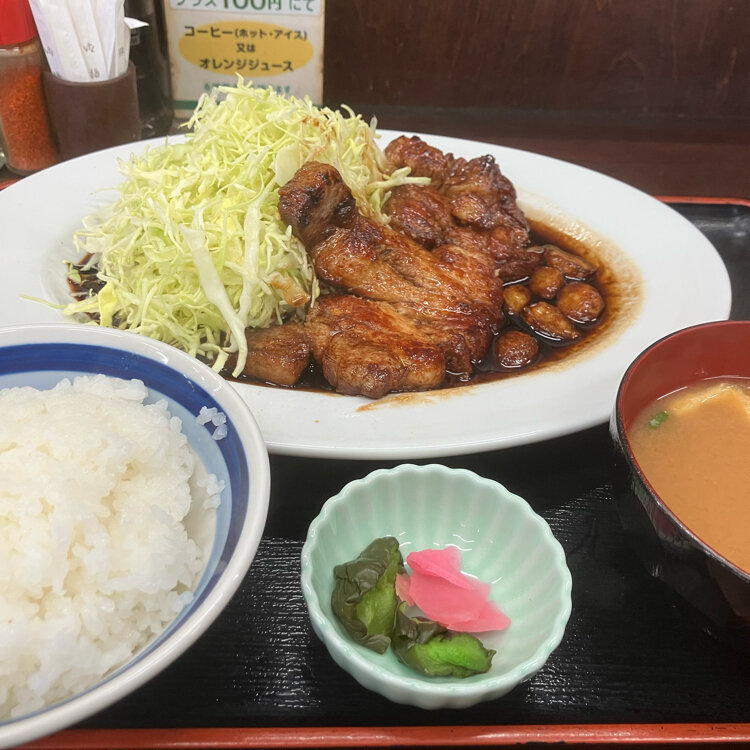 四日市 まつもとの来来憲 さん🐷 トンテキです☺️ 、 わたしトンテキ好きなんですよね😊 、 2008年四日市でとんてき協会が発足🙋‍♂️🙋‍♂️🙋‍♂️ 今はB-1グランプリにも入賞し名古屋や東京にもお店が出来て有名になりましたが歴史は戦後間も無くから四日市で食べられてました😊 、 まつもとの来来憲さんが発祥の大とんてきはグローブ焼きと言われ、その名の通り野球のグローブにタレがかかってる見た目です😳 、 とんてき協会は四日市とんてきをこう定義してます💁‍♀️ 、 黒っぽい濃い味のソース 厚切りの豚ロース肉を使用 ニンニクが添えられている 千切りキャベツの付け合わせ 、 以上です😊形は関係ないみたい 、 純四日市市民達はグローブに噛み付いて口周りベトベトで食べるのが醍醐味みたいですが、わたしはコマギレタイプをタレがひたひたのキャベツたっぷりでいただくのが好きなのでここでもコマギレを頼みました☺️ 、 グローブ焼きはメニュー表でご確認ください😊 、 あとこう見えて中華屋さんなので餃子も頼みます😊🥟 、 周りはチャーハン頼んでた人が多かったから美味しいのかな😊 、 ボリューム満点四日市とんてき美味しい😋 、 、 #あきらの東海 、 #あきらの餃子