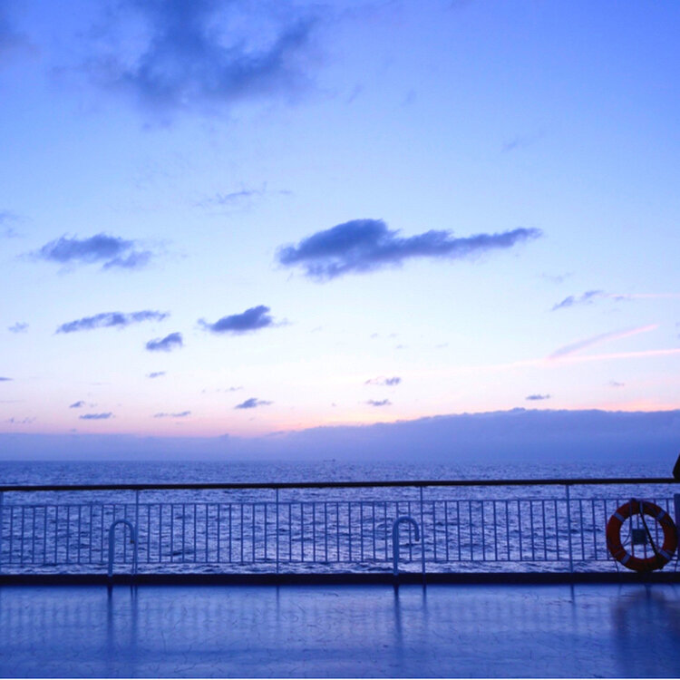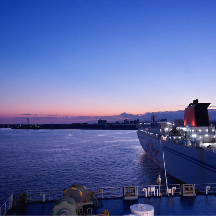 出港は19時ごろ。出港前のマジックアワー、船のデッキから眺めたその風景がとても美しくて心に残りました。