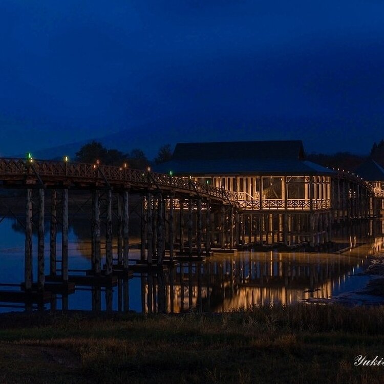 この橋は岩木山をバックに手前からと、反対の奥側、そして1つ隣の端からの3つのアングルが一般的に見所となっているようです✨