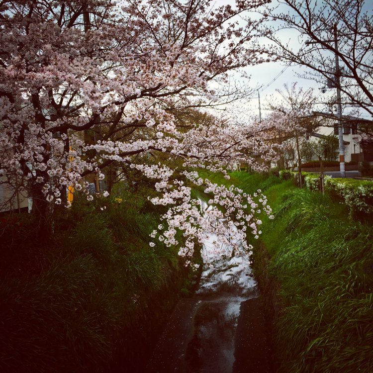 京都、下鴨本通り 白川疎水沿い 小雨降る日の桜 #花さんぽ #京都 #白川疎水 #桜