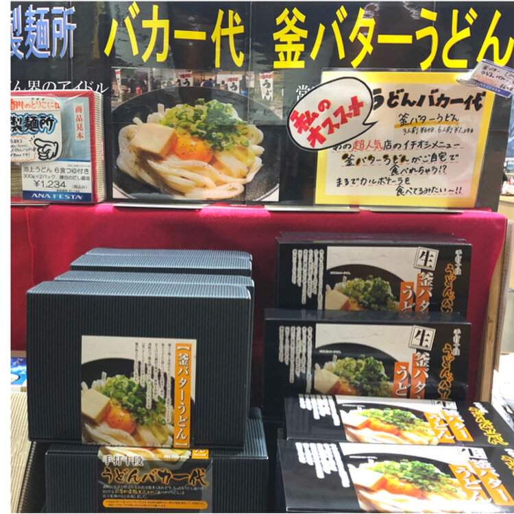 お昼ご飯は高松空港で讃岐うどんを食べようと思ってましたが、まさかのお休み⤵︎気を取り直して、讃岐うどんを買いに行き、「バカ一代 釜バターうどん」と「うどん本舗山田屋 生うどん」を買いました。と、ここで💡大泉洋さんがアナザースカイで訪れた「うどん本舗山田屋本店」へ行こうと話になり、高松空港を後にしました🚗