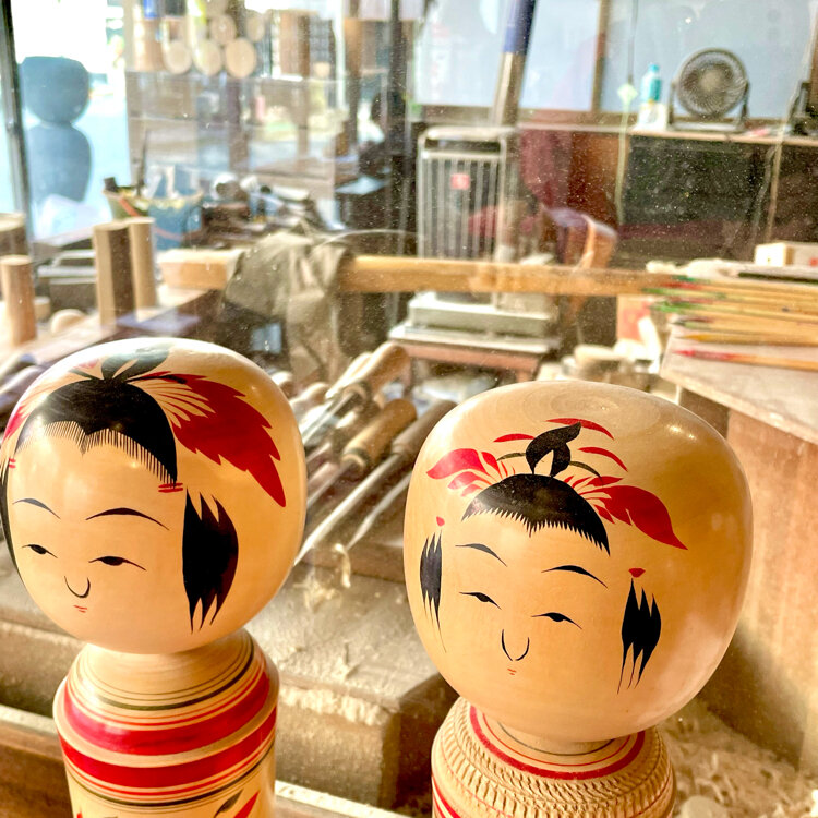 古い街並みの鳴子で出会った《新しいこけし》。家に飾るのが楽しみ💓