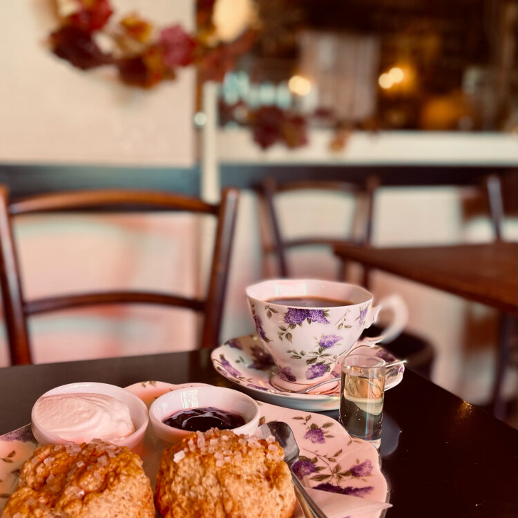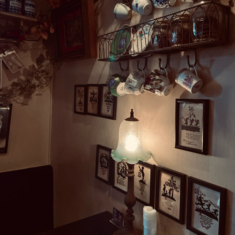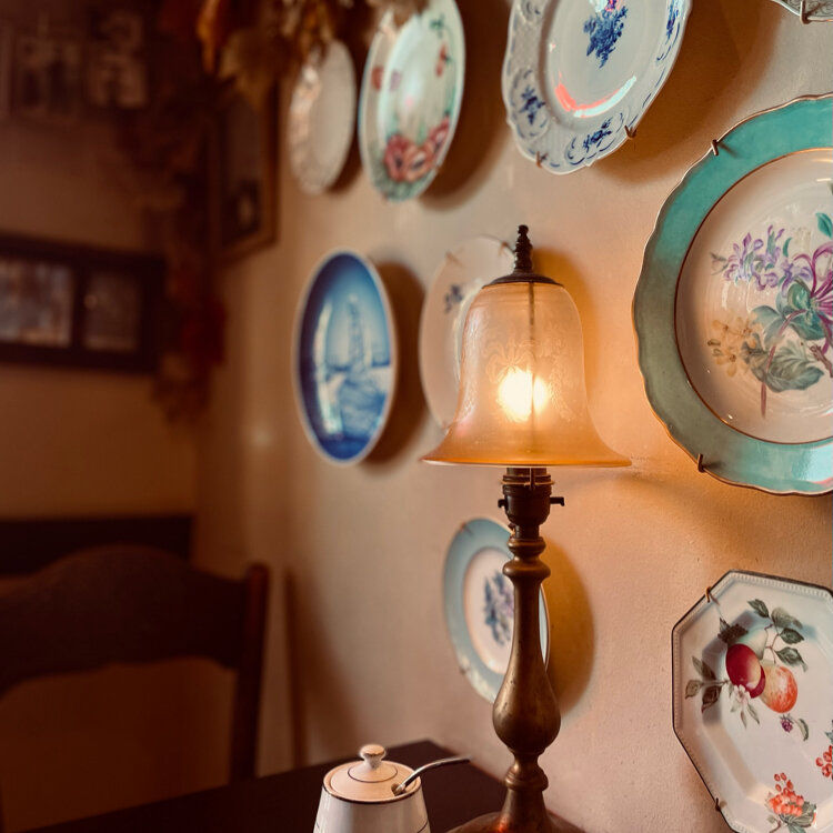 .。໒꒱.*.✮.♱.𝐶𝑎𝑓𝑒 𝑚𝑖𝑒𝑙④.♱.✮*.໒꒱°. テーブルのランプにほんのりと照らされたカフェミエルの店内。「お好きなお席にどうぞ」とお声掛け頂いたのですが、どの席も素敵で迷ってしまいます。道から半分地下に入るので、なおさら隠れ家のような雰囲気。また来たくなるお店でした。 #カフェ#隠れ家#ビンテージ#レトロ#喫茶店#コーヒー#スコーン#九段下#東京