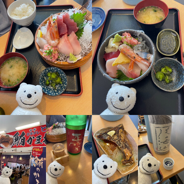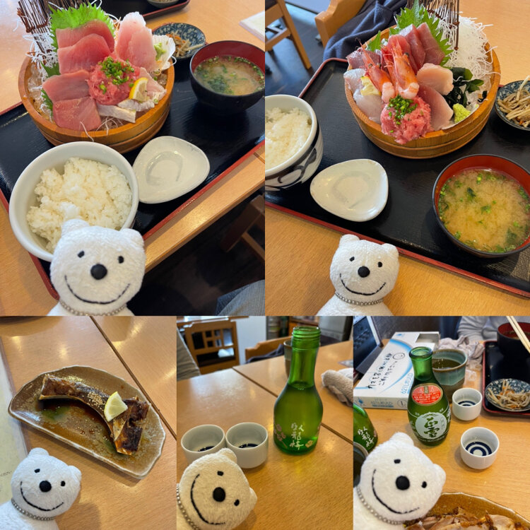 クマ散歩:ととすけで品行方正なクマはまぐろトロ三昧定食、日替わりお刺身定食、臥龍梅&正雪の清水の昼下り The Bear had a drink with Extravagant Fatty Tuna Sashimi Combo, Daily Special Sashimi Combo, Garyubai Sake & Shosetsu Sake early in the afternoon at Totosuke, Shimizu!♪☆(*^o^*)