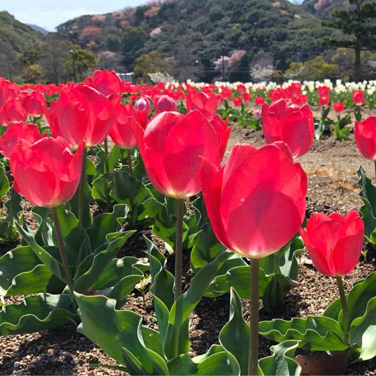 ウチノ海に面した広くて綺麗に整備された「ウチノ海公園」🟦今はあちこちに桜が満開です🌸海に向かって伸びる道、この季節が一番好きです🌸「お花畑」には赤白のチューリップが咲、広場前にあるブラシの木には1つだけ、真っ赤なブラシのような花が咲いていました🌺ウォーキング、ジョギング、キャッチボール‥‥それぞれの楽しみ方で楽しんでいました🎵 2023.2.29 #私のことりっぷ旅 #花だより #Myことりっぷ #ウチノ海 #桜 #チューリップ #桜