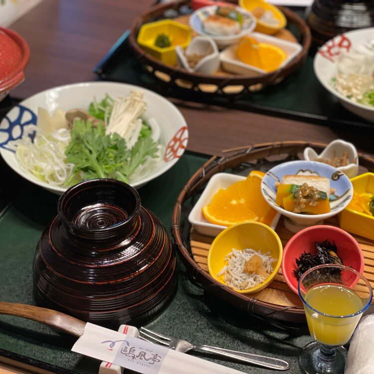 朝はダイニングにて料理家 細川亜衣さん監修による朝食。