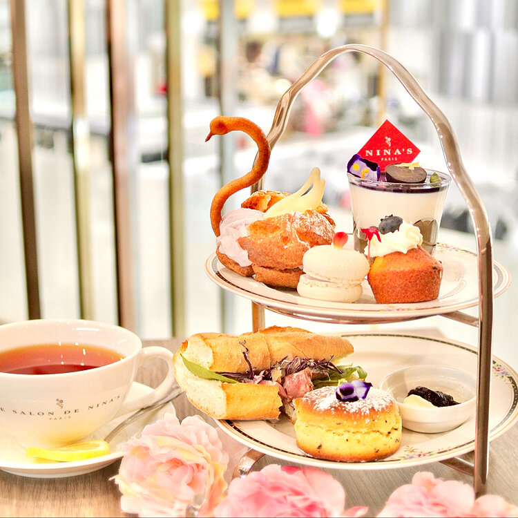 🇫🇷フランスの「サロン・ド・テ」をイメージした美しい店内で「NINA´S」紅茶と手作りケーキ、デザート、お食事などが楽しめます。