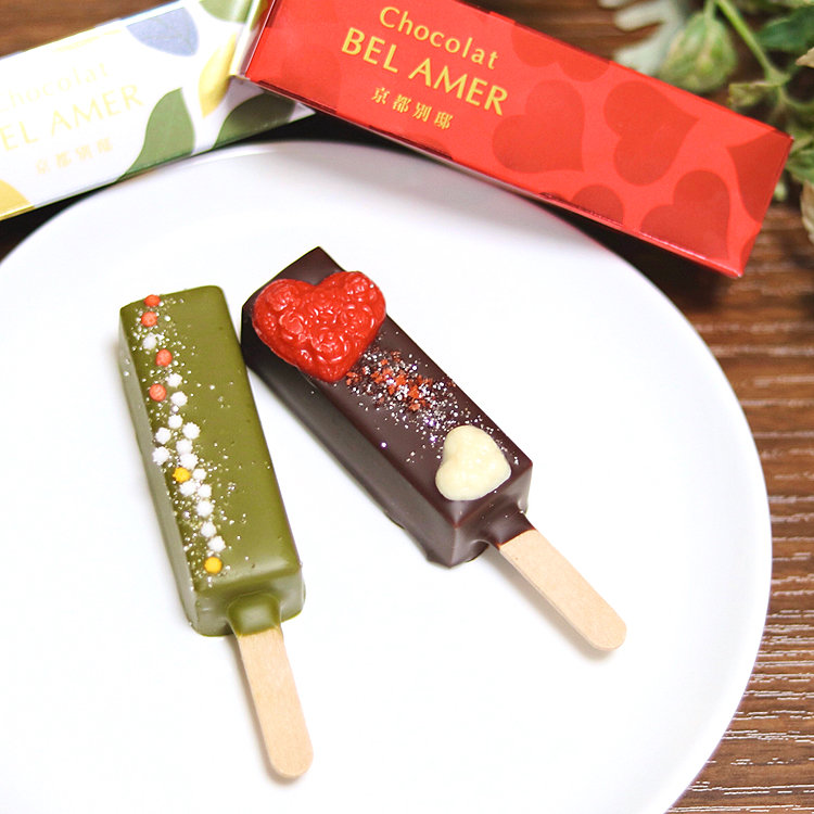BEL AMER 京都別邸で、スティックショコラとタルトショコラを購入✨ステックショコラは甘ーい「紅玉りんご」と、ビスケットやアーモンドが入った「ビター」、タルトショコラはカカオニブがアクセントな「カカオ」