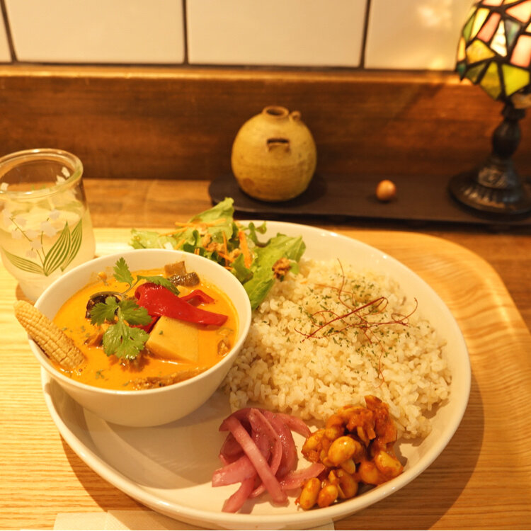 定食はすでに終わっていたので、食欲そそるタイ風のカレーにしたのですが、これがとっても美味しかったです。たけのこや地元で生産されたマッシュルームがゴロゴロ入った野菜たっぷりのカレー。ココナッツミルクのやさしさとスパイスの香りが最高でした。